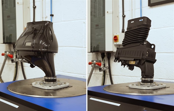 Sammenligning af Eventuri-indtaget med OEM luftkasser tydeliggør volumenforskellen og forbedringen i luftstrømsforløb. Koldluftstilførslen i OEM-systemet forbindes via en lang fleksibel kanal som er begrænset i størrelse. Dette efterlader også lidt plads for airbox-bunden til at forme den indkommende luftstrøm til filteret. Eventuri har indarbejdet størstedelen af koldluftstilførslen i bunden af deres airbox, hvilket tillader langt større intern volumen og en mere organisk vej til, at filteret får maksimal udsættelse.