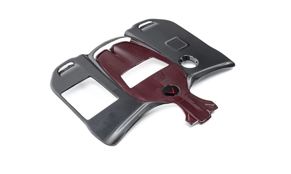 Ved at udnytte det under panseret ledige rum har Eventuri maksimeret volumen i deres indtagsystem, men dette krævede også, at motorafdækningen blev redesignet, da OEM-dækslet ligger tæt på OEM-indtagene. Det nye dæksel er fremstillet i prepreg kulfiber og indeholder højtemperaturisolering for at beskytte mod varmen fra turbinerne.