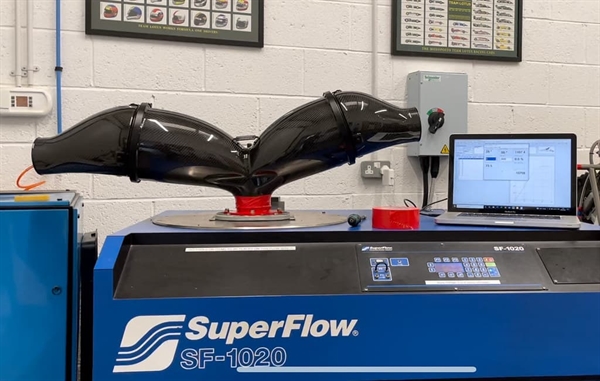 Eventuri udførte flowtest ved hjælp af en Superflow SF-1020 for at måle den maksimale flowhastighed ved et trykfald på 28" H2O. Testene blev udført på samme dag under kontrollerede forhold ved brug af den samme testopsætning for hvert system. Eventuri testede deres komplette indsugningssystem mod standard luftbox-systemet. Resultaterne viser en stigning i maksimalt flow med yderligere 120 CFM over OEM-luftboxen. Vigtigt er det, at dette er opnået med et forseglet indsugningssystem, så indsugningstemperaturen holdes på et minimum.