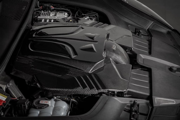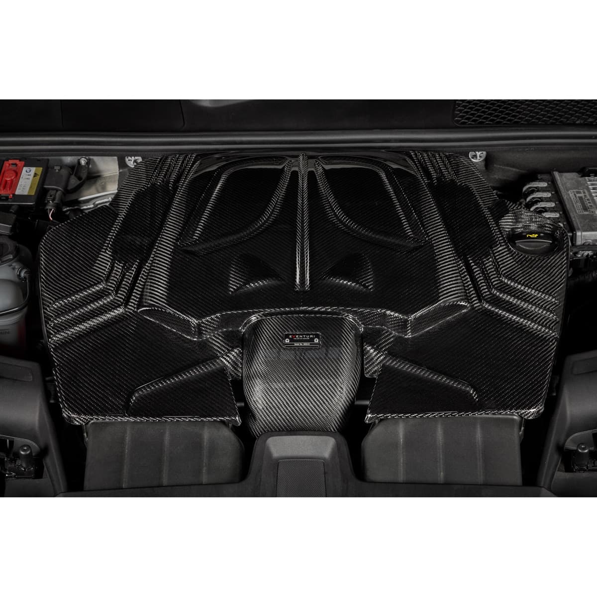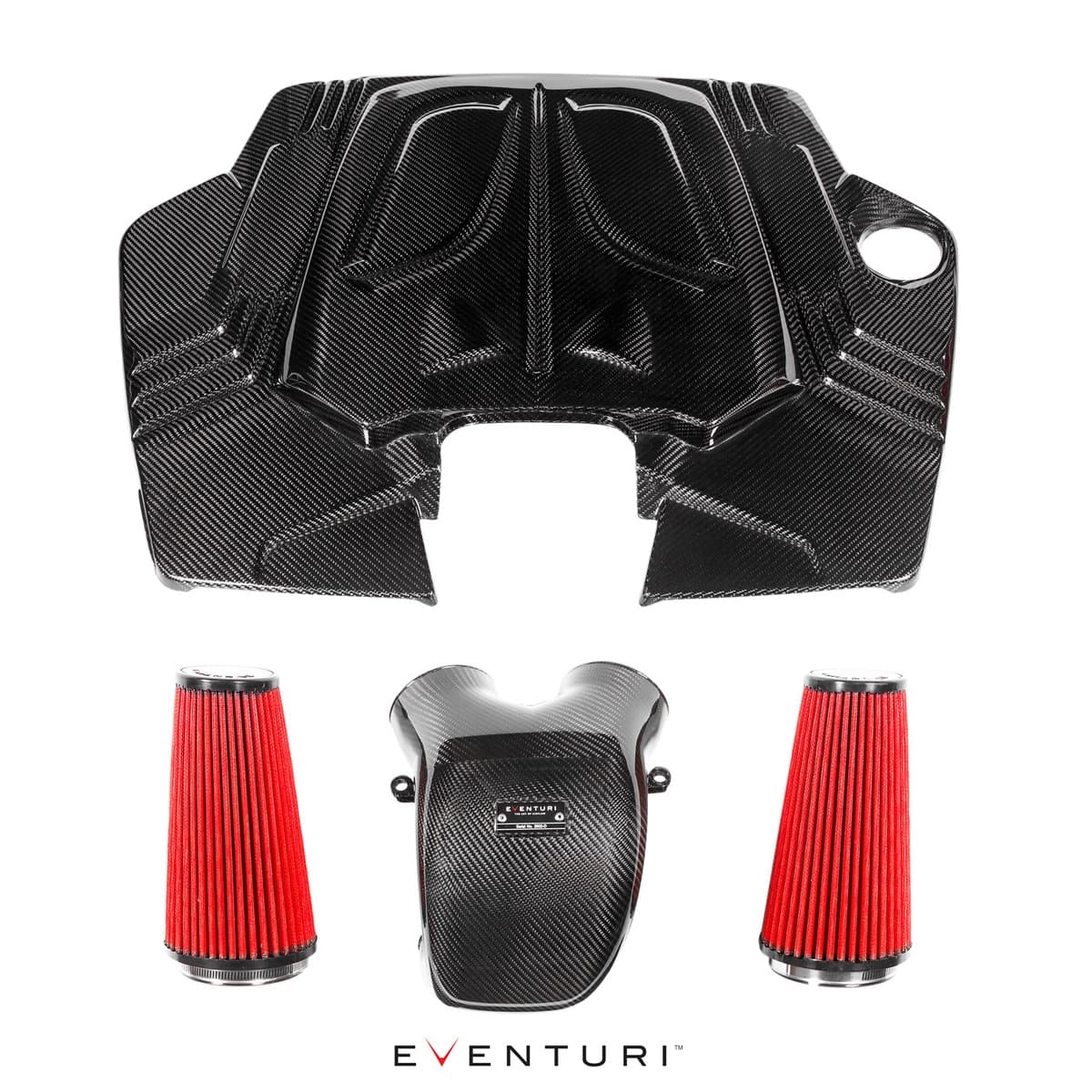 Den første begrænsning, Eventuri skulle overvinde for at øge volumen i indtaget markant, var luftfilterlåget. Det originale låg efterlader en lav åbning for flow-opsamleren og begrænser også filtertypen. Ved at hæve den midterste del af låget skabte Eventuri mere plads til både en større opsamler og større filtre. Låget er fremstillet af præimpregneret kulfiber og anvender de samme monteringspunkter som originalen.