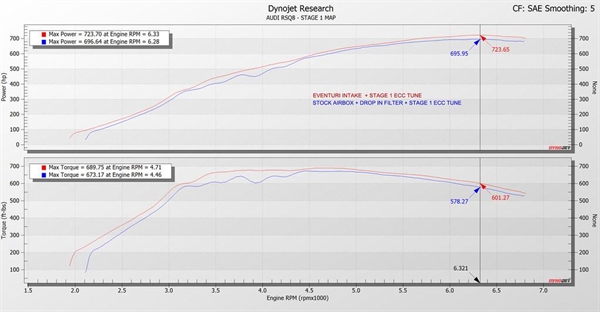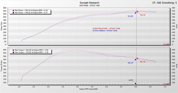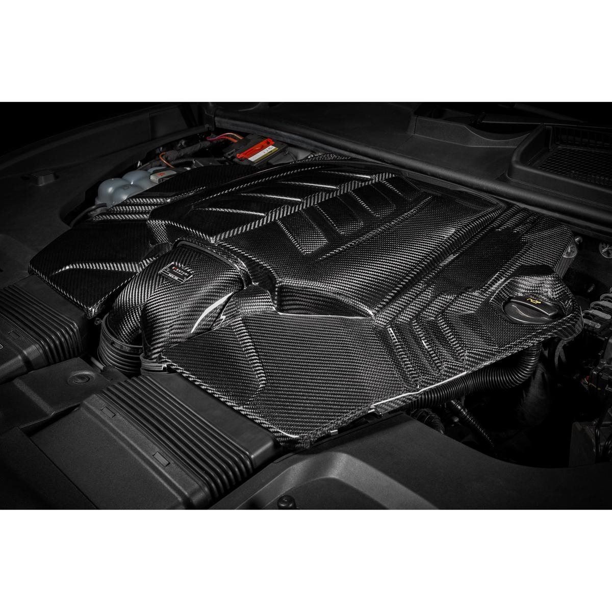 deres 4.0TFSI V8 EA825 indsugning er et komplet redesign og optimering af hele luftindtagsbanen. Hver komponent, inklusive låget, er udviklet til at lade V8 twin-turboerne trække luft ind med mindre modstand, hvilket resulterer i brancheførende ydelsesforbedringer. Det originale luftfilterlåg skaber en begrænsning på størrelsen af flow-samleren, som leder luften fra filtrene til indsugningerne. Derfor har Eventuri øget højden på den centrale del af låget for at skabe plads til en større flow-samler og større keglefiltre. Dette fjerner den indbyggede begrænsning og adskiller deres indsugning fra konkurrenterne, som ved at bruge det originale låg også er nødt til at benytte en begrænset samler og filtreringsmedie. Turboindsugningerne er op til 43% større i tværsnitsareal end originalt og er designet med en avanceret dimpled inderside for at reducere friktionstab mellem luftstrømmen og vægfladen. Ved at skabe en "luftpude" ved vægfladen kan luftstrømmen bevæge sig hurtigere gennem indsugningerne med mindre tryktab. Dette gør det muligt for turboerne at trække luft ind med mindre modstand og dermed reducere wastegate-belastningen, hvilket resulterer i højere samlet ydeevne.