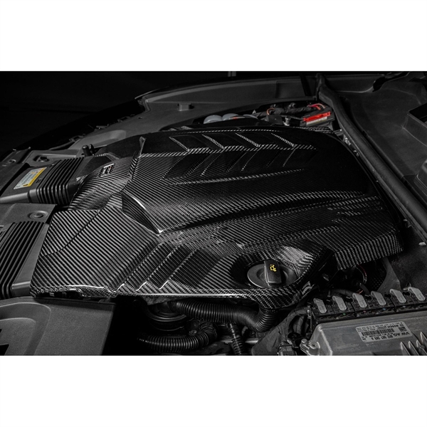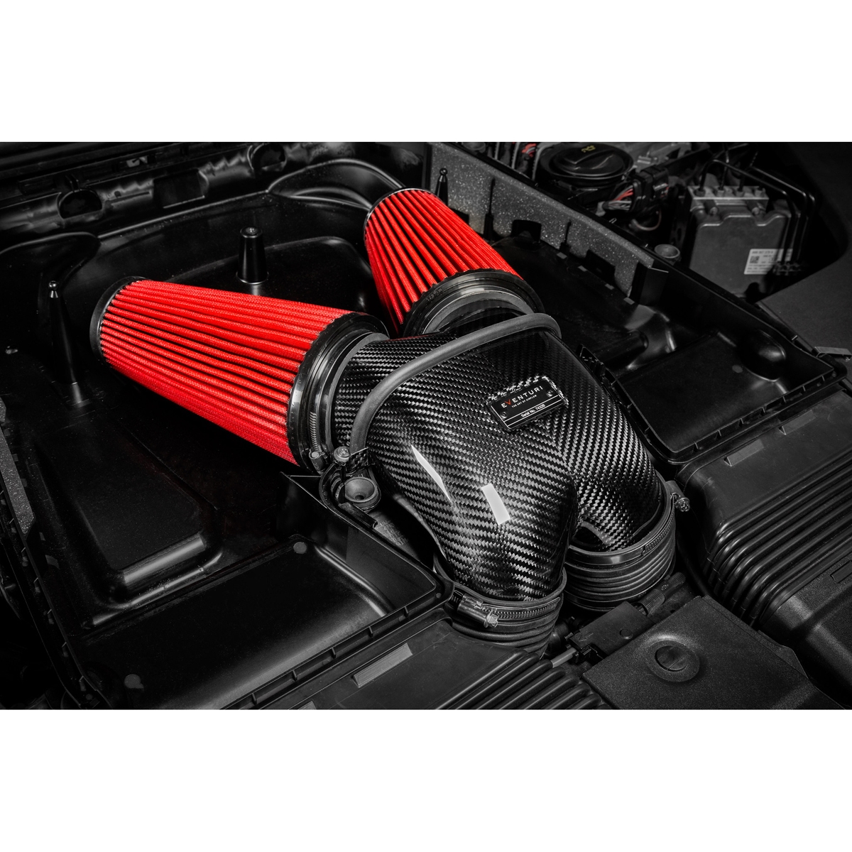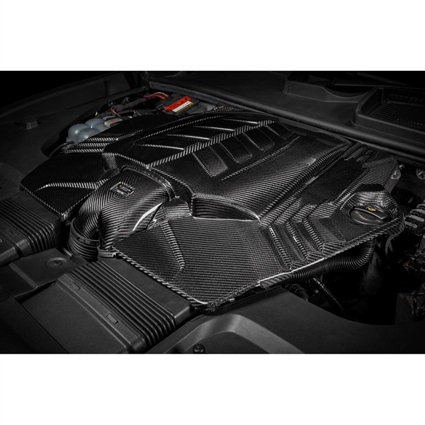 Den første begrænsning, Eventuri måtte overvinde for dramatisk at øge indsugningens samlede volumen, var luftfilterlåget. Det originale låg efterlader en smal åbning til flow-samleren og begrænser også det filtreringsmedie, der anvendes. Ved at skabe en hævet midterdel i låget kunne Eventuri skabe mere plads til en større flow-samler og større filtre. Låget er lavet af pre-preg kulfiber og bruger de samme monteringspunkter som det originale låg.
