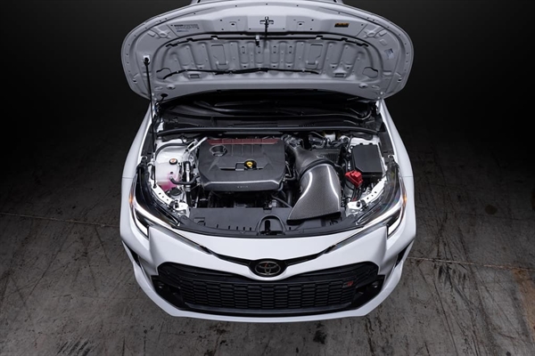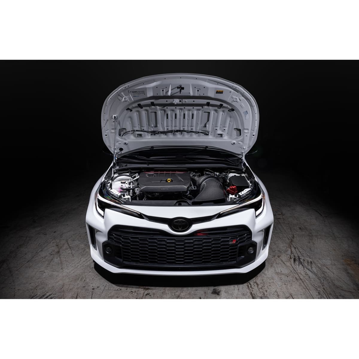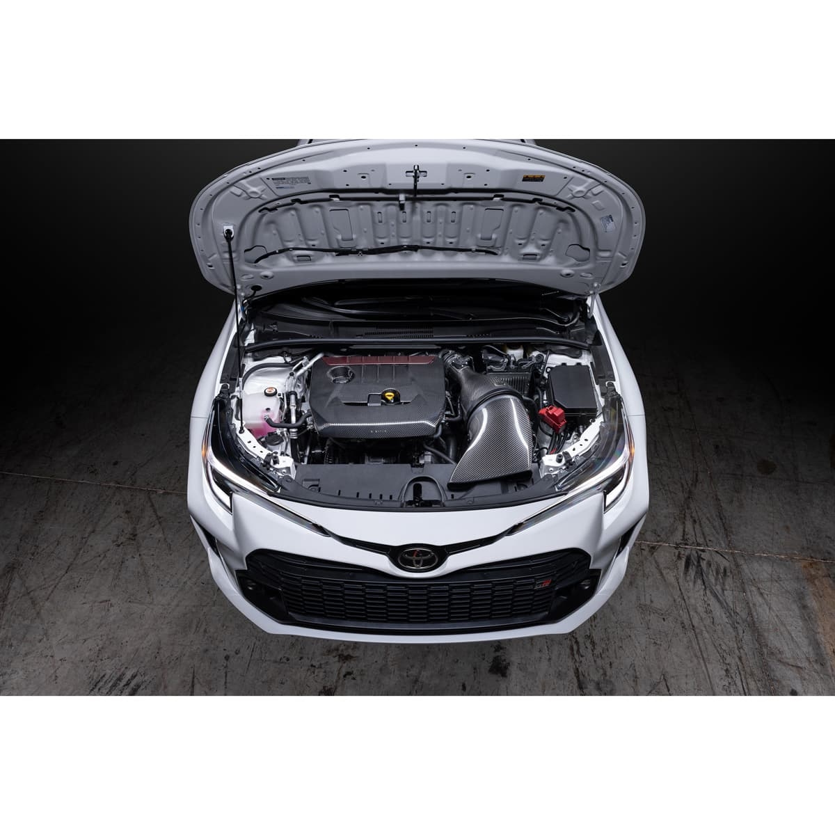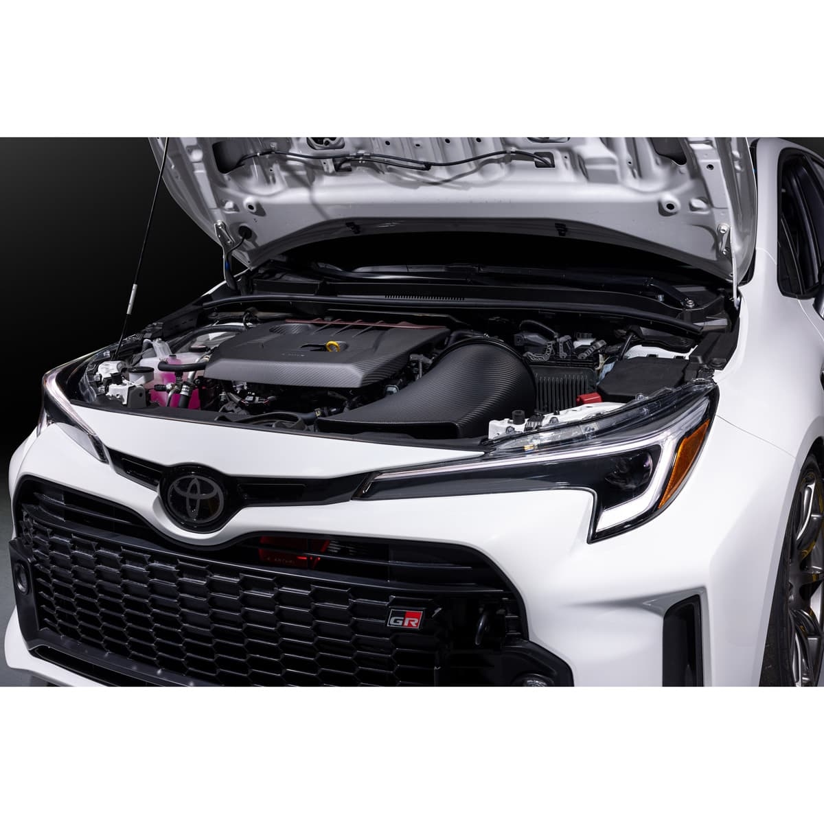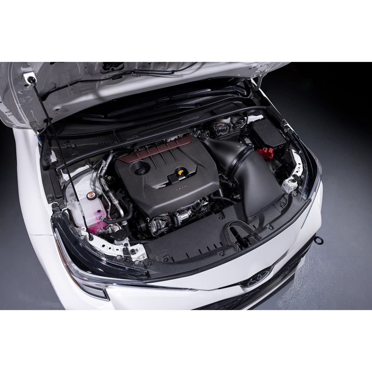 GR Corolla indsugningen bygger videre på deres GR Yaris system, som blev udviklet gennem omfattende dataregistrering af temperaturer, flowhastigheder og dynotests. Da dette er en turbomotor, var varme og volumen de vigtigste overvejelser under udviklingen. Dette indsugningssystem er udviklet til at tilbyde den højest mulige flowhastighed, samtidig med at det opretholder den lavest mulige indsugningstemperatur. Hver komponent er designet til at give turbinen en glat og fri flowvej. Ved at sikre et tætsluttende system har Eventuri forbedret IAT’erne i forhold til OEM-luftfilterkassen, samtidig med at Eventuri øgede det interne volumen for at mindske trykfaldet og dermed reducere turbopumpetab. På den måde kan turbinen arbejde mere effektivt og nå peak boost hurtigere, hvilket giver en reel ydeevneforbedring.