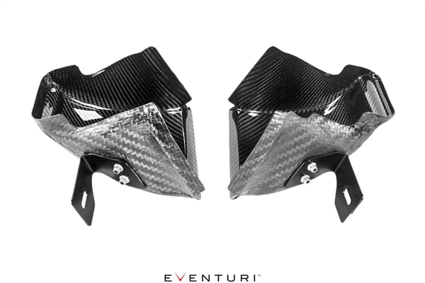 deres indsugningsrør er igen fremstillet af 100 % prepreg kulfiber. Hvert rør har et integreret MAF‑sensorfæste som er CNC‑bearbejdet i aluminium. Det kortere venstre rør går glat fra kulfiberhuset ned til turboin‐løbsrøret. Det længere højre indsugningsrør skal give plads over blæserhuset og stagbøjlen. For at klare det bruger Eventuri samme princip som originalt, med overgang i tværsnit fra cirkel ved turboin‐løbet til oval for at give fri afstand over huset, og så tilbage til cirkel ved filterhuset. Eventuri sikrede, at disse overgange var gradvise for ikke at forstyrre luftstrømmen, desuden opretholdt Eventuri samme tværsnitsareal for at holde hastigheden gennem røret konstant.