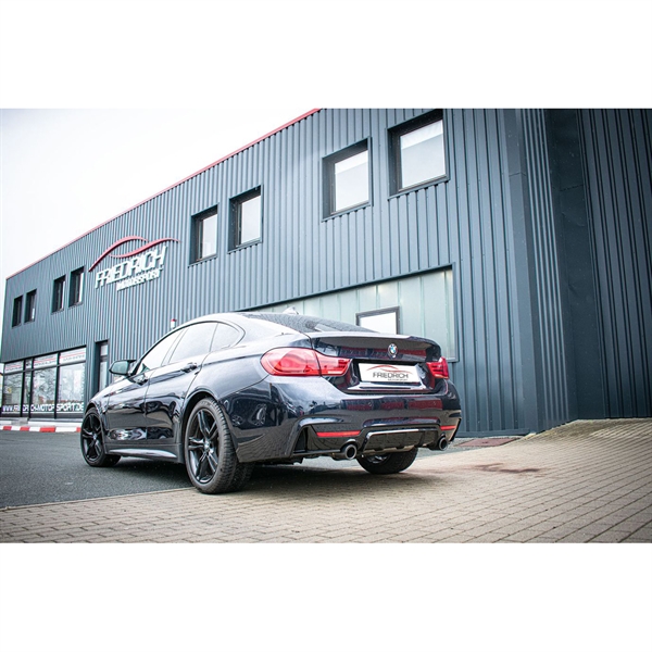 Friedrich Motorsport 76mm duplex udstødningssystem i rustfrit stål til BMW 4 Serie F32 / F33 / F36. Sporty lyd, perfekt pasform og høj kvalitet.