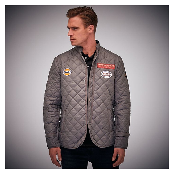 Denn klassiske GPO quiltede jakke fås i en flot grå nuance. Den har en rummelig, men ikke for bred pasform og er lavet af højkvalitetsmateriale, der føles fantastisk. Den har også historiske logoer og et drive-style mærke på ærmet. En klassiker blandt klassikere!