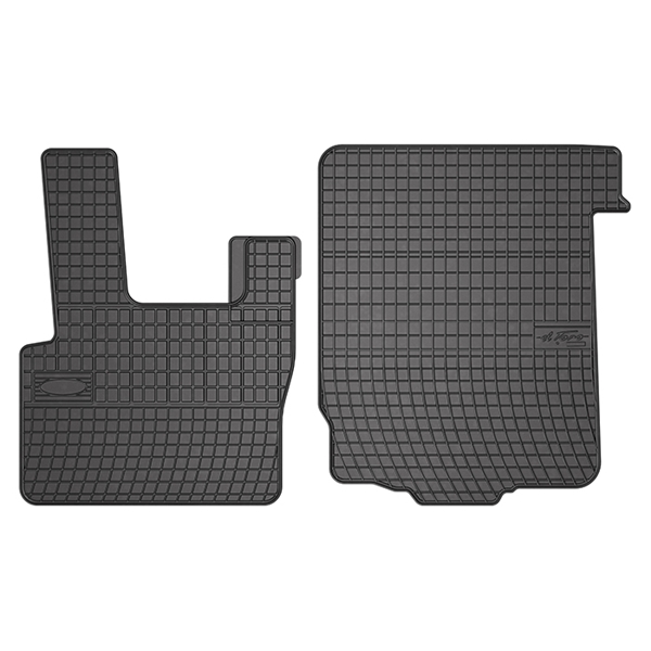 Gummimåtter til DAF CF 2002- Gummimåtter er praktiske og et absolut must i vinterhalvåret. Måtterne er "skræddersyet" til den enkelte bilmodel, og har derfor 100% pasform takket være nøjagtig lasermåling af hver bil. Måtten er produceret af 100% stræk fleksibel gummi og er med funktionelt ternet mønster på måtten. Måtten har yderligere materialeforstærkning under pedalerne for bedre holdbarhed. Måtten har en 1,5 cm praktisk kant, hvilket gør at måtten holder på skidt og snavs og beskytter bilens originale tæppe, samt nem at rengøre. Hvis bilen har originale låse, vil der i måtten være fastgørelseshullerne som sikrer at måtterne holdes på plads i bilen. Nogle gummimåtter kan have en kraftig lugt af gummi. Disse gummimåtter er uden den ubehagelige lugt af gummi, men med tilsætning af en delikat vaniljearoma. 100% pasform 100% stræk fleksibel gummi Kant: 1,5 mm Svag duft af vaniljearoma Disse gummimåtter passer til: DAF CF, 2002-