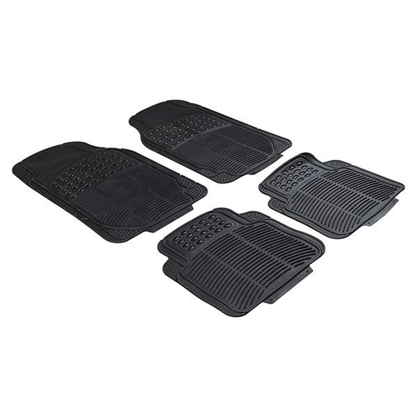 Praktisk universalt gummimåttesæt til bil, komplet til for og bag. Mulighed for at tilpasse måtterne til de fleste bilmodeller.