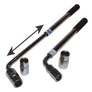 Hjulnøgle 17/19 og 21/23 mm. Hjulnøgle med 2 vendbare toppe 17/19 mm og 21/23 mm. Teleskop model. Fremstillet i chrome vanadium stål med gummibelagt håndtag, som giver et godt greb. TÜV godkendt.