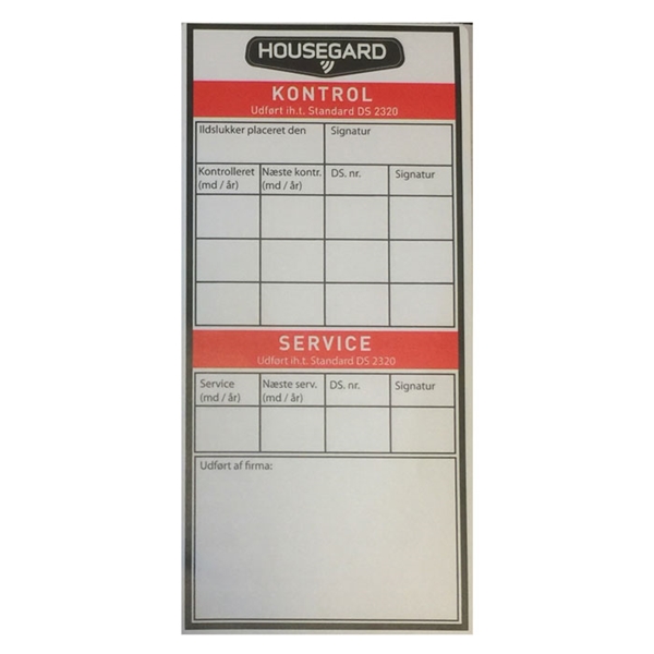 Kontrolmærkat til Housegard pulverslukker 2 kg.