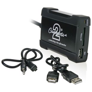 USB (SD/SDHC og AUX) adapter til at tilslutte USB-sticks, USB-harddisk, iPod, MP3-afspiller, Mini-diske, CD-afspiller til OEM hovedenheden.
