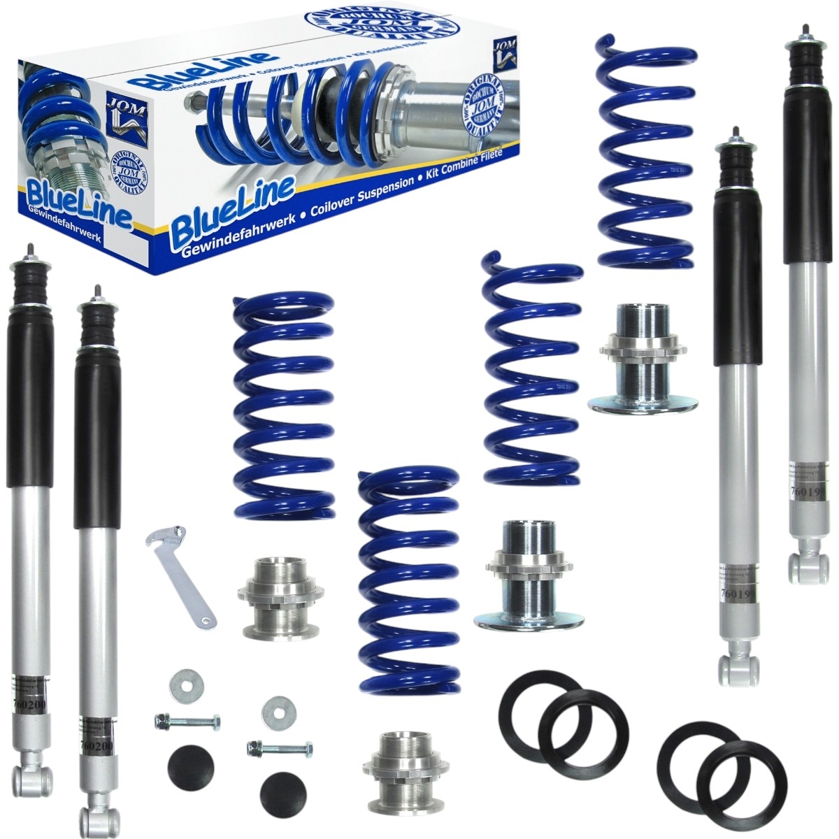 Denne gevindundervogn kommer fra et stort Tysk firma, JOM Blueline, som er en tysk tuningspecialist, med base i Bochum Tyskland. Blueline gevindundervogne er med galvaniseret fjederben, og blå fjedre. Gevindundervognen kan højdejusteres fra 20 mm til 85 mm – for de nøjagtige detaljer omkring lige nøjagtigt din Mercedes SLK, se da beskrivelsen længere oppe.