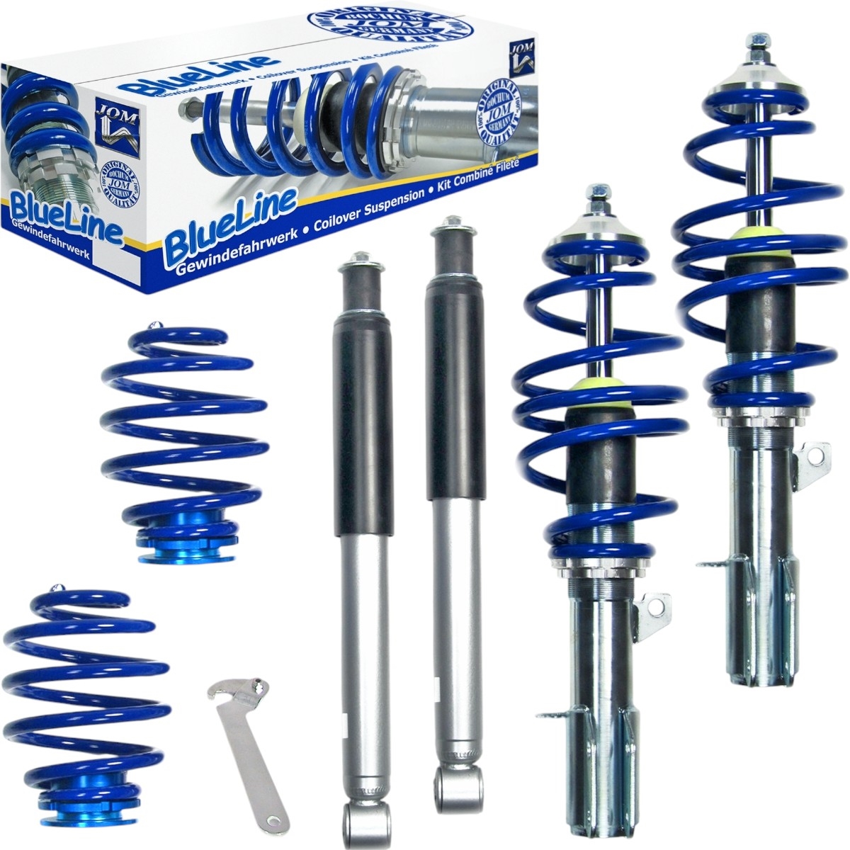 Denne gevindundervogn kommer fra et stort Tysk firma, JOM Blueline, som er en tysk tuningspecialist, med base i Bochum Tyskland. Blueline gevindundervogne er med galvaniseret fjederben, og blå fjedre. Gevindundervognen kan højdejusteres fra 20 mm til 85 mm – for de nøjagtige detaljer omkring lige nøjagtigt din Opel Corsa C, se da beskrivelsen længere oppe.