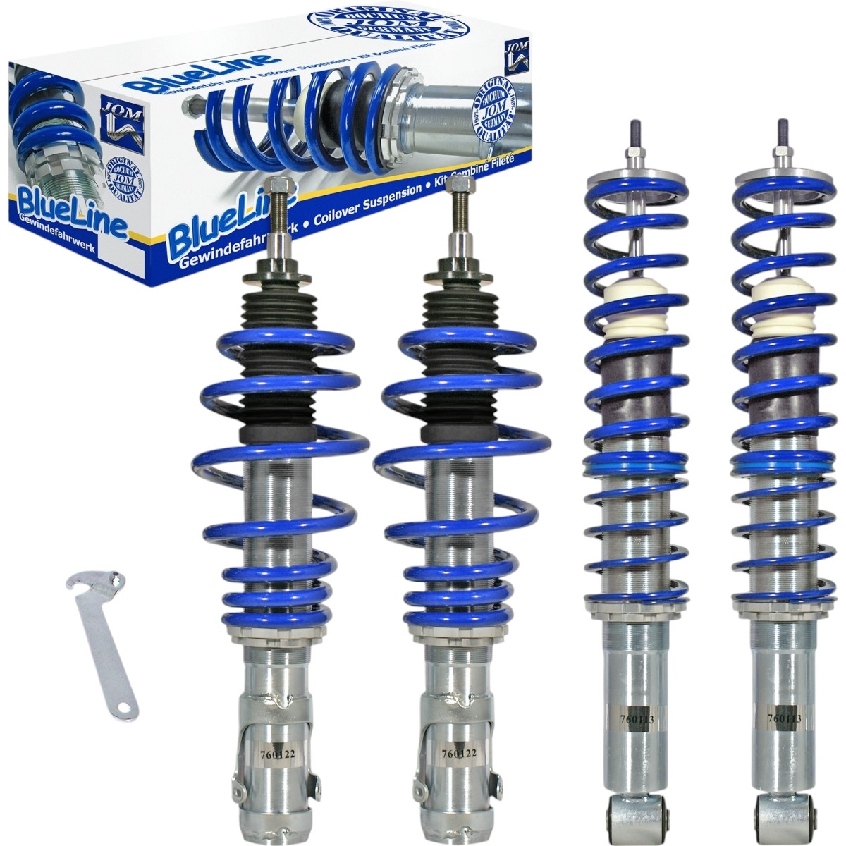 Denne gevindundervogn kommer fra et stort Tysk firma, JOM Blueline, som er en tysk tuningspecialist, med base i Bochum Tyskland. Blueline gevindundervogne er med galvaniseret fjederben, og blå fjedre. Gevindundervognen kan højdejusteres fra 20 mm til 85 mm – for de nøjagtige detaljer omkring lige nøjagtigt din Seat Cordoba 6K, se da beskrivelsen længere oppe.