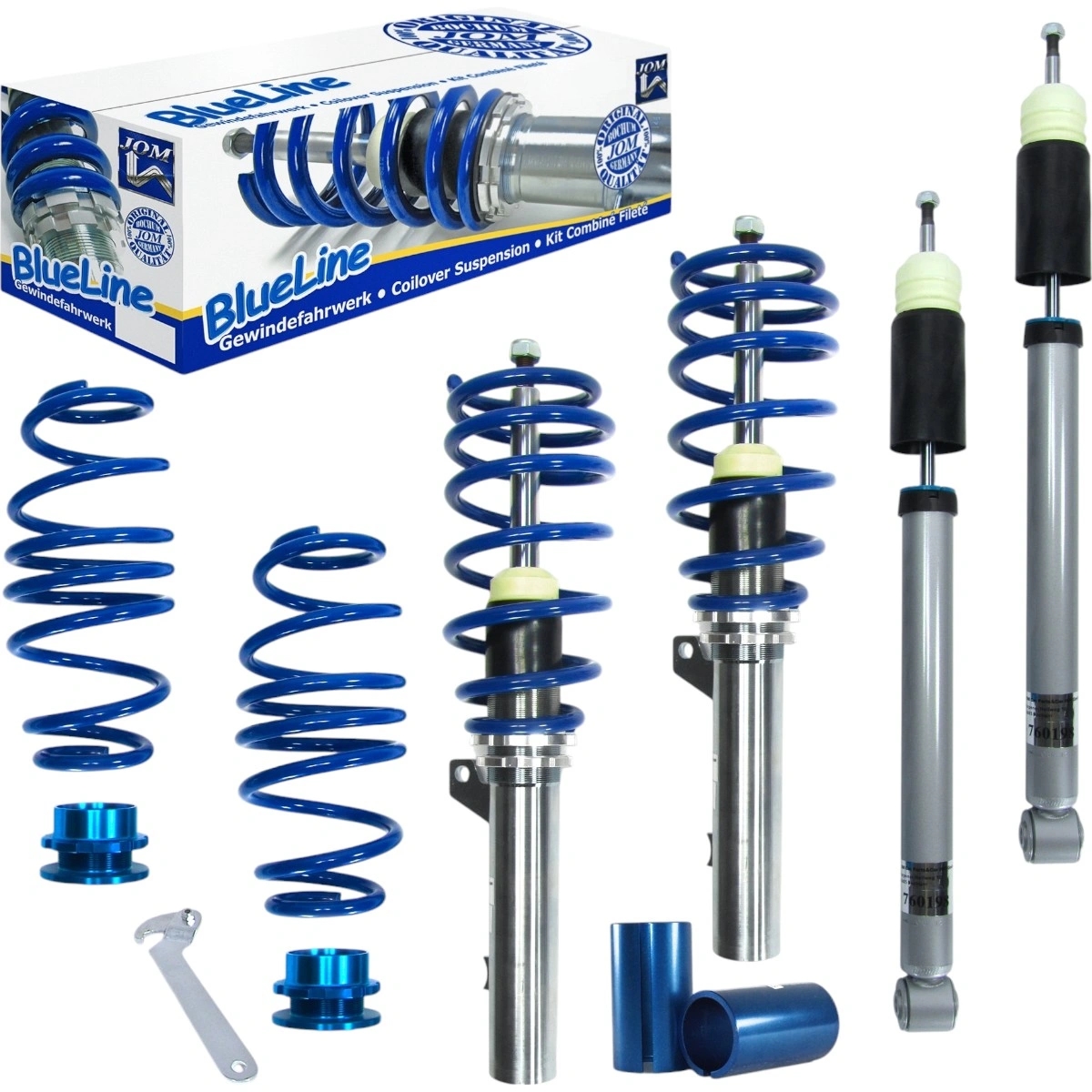 Denne gevindundervogn kommer fra et stort Tysk firma, JOM Blueline, som er en tysk tuningspecialist, med base i Bochum Tyskland. Blueline gevindundervogne er med galvaniseret fjederben, og blå fjedre. Gevindundervognen kan højdejusteres fra 20 mm til 85 mm – for de nøjagtige detaljer omkring lige nøjagtigt din Seat Leon 5F, se da beskrivelsen længere oppe.