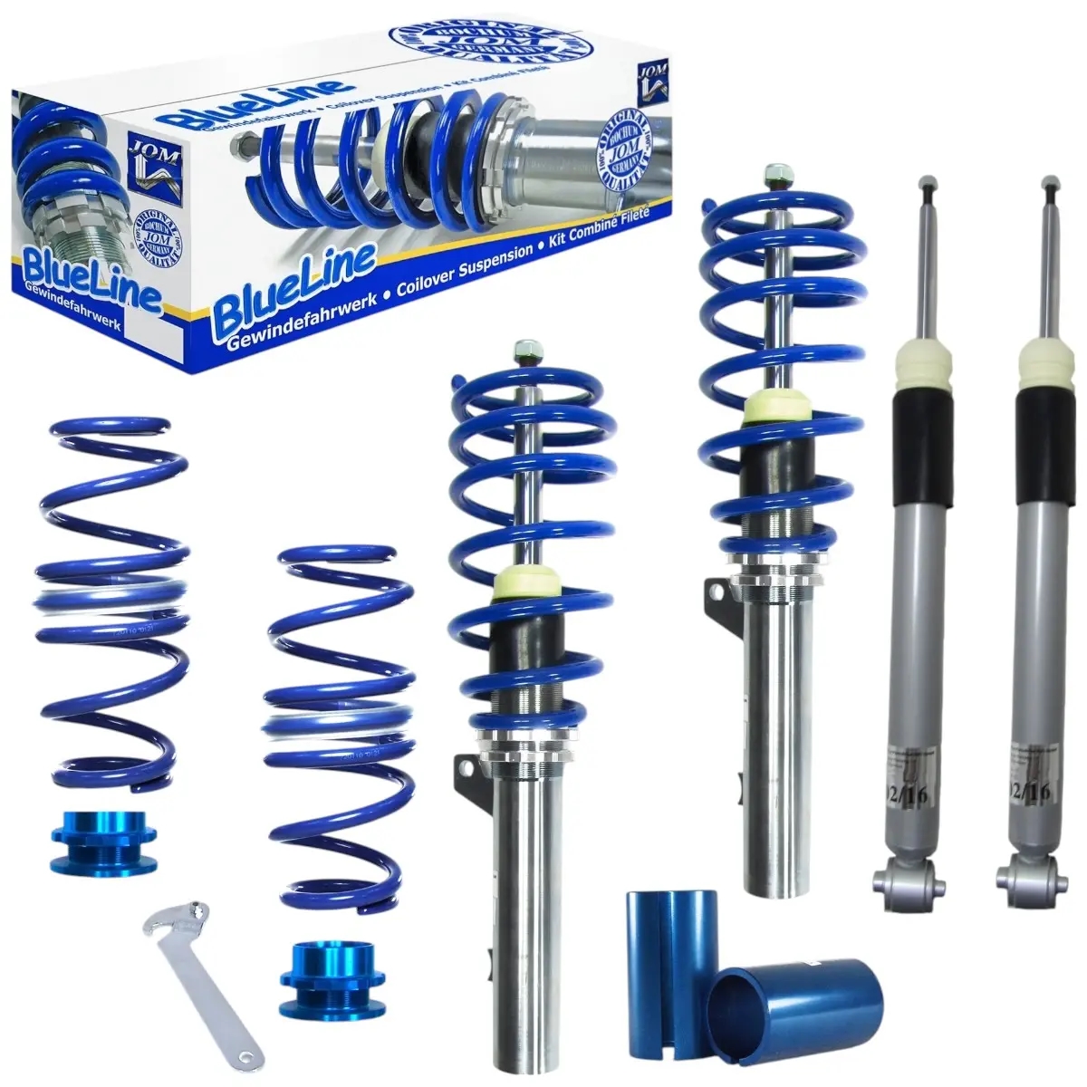 Denne gevindundervogn kommer fra et stort Tysk firma, JOM Blueline, som er en tysk tuningspecialist, med base i Bochum Tyskland. Blueline gevindundervogne er med galvaniseret fjederben, og blå fjedre. Gevindundervognen kan højdejusteres fra 20 mm til 85 mm – for de nøjagtige detaljer omkring lige nøjagtigt din Skoda Octavia Limo NX, se da beskrivelsen længere oppe.