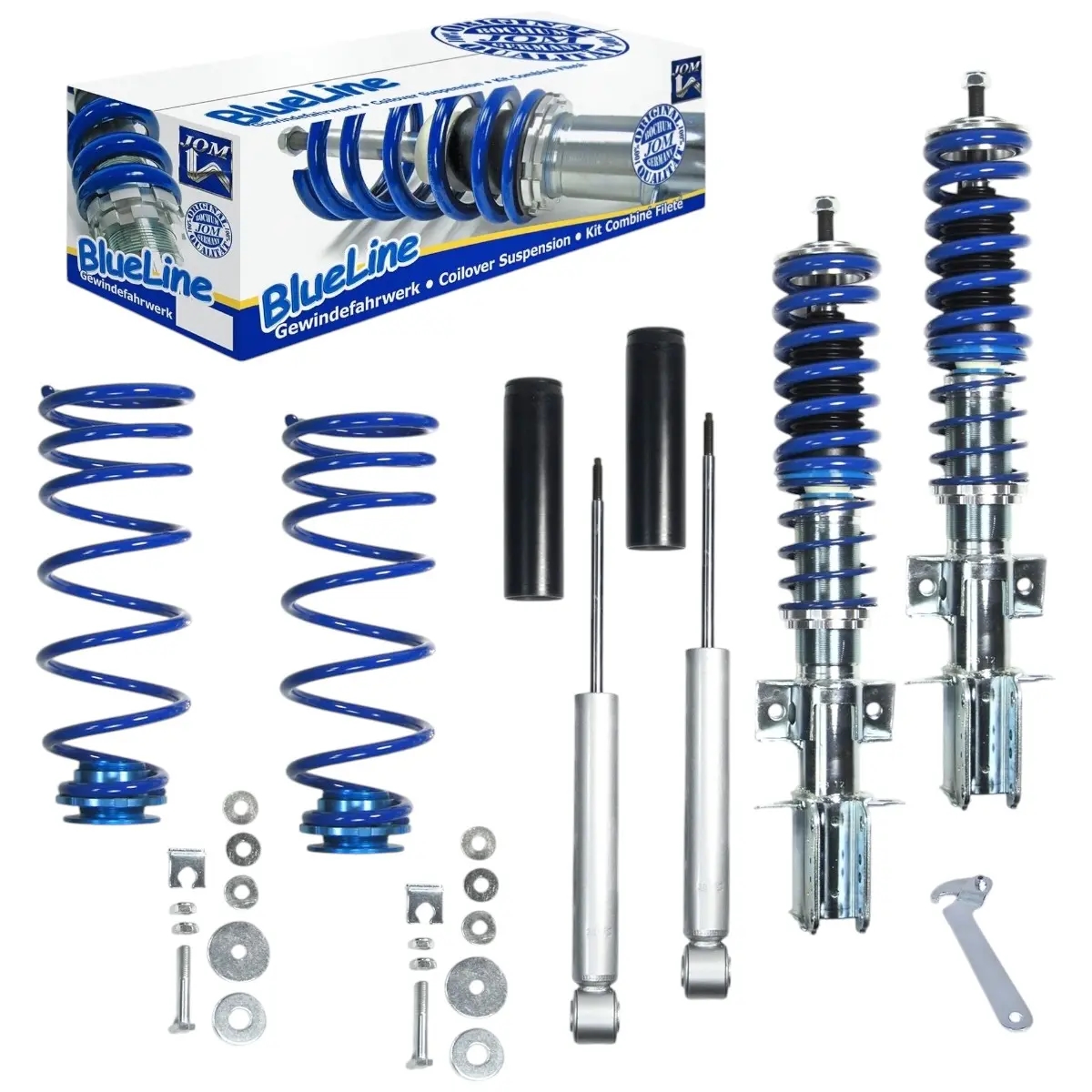 Denne gevindundervogn kommer fra et stort Tysk firma, JOM Blueline, som er en tysk tuningspecialist, med base i Bochum Tyskland. Blueline gevindundervogne er med galvaniseret fjederben, og blå fjedre. Gevindundervognen kan højdejusteres fra 20 mm til 85 mm – for de nøjagtige detaljer omkring lige nøjagtigt din Volvo 850, se da beskrivelsen længere oppe.