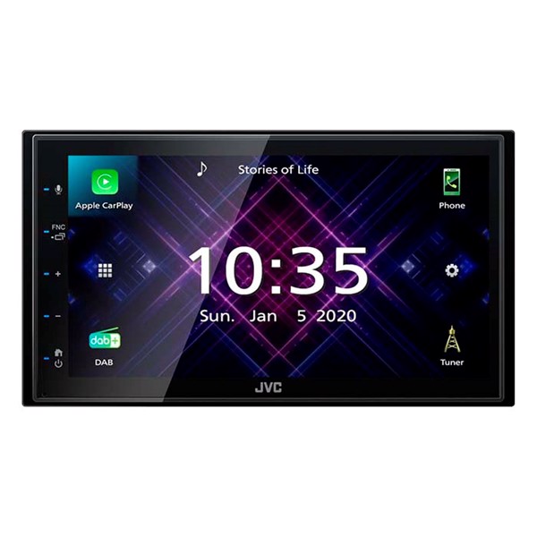 Digital mediemodtager fra JVC med 6,8" kapacitiv touch-skærm med indbygget DAB+. Radioen har indbygget Apple CarPlay og Android Auto, som tilsluttes via USB, og kan desuden spejle Android-telefoner. Den har indbygget Bluetooth trådløs teknologi, som giver føreren mulighed for trådløs musikafspilning, samt flere forskellige trådløse funktioner.