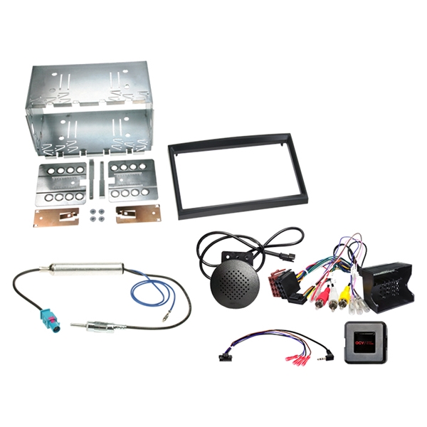 Passer til originale head units Køretøjer med Blaupunkt / Continental / Siemens VDO RD4 OEM HU (med volumeknap). Køretøjer med Clarion MQ-RD6 OEM HU (monokromt display og central drejeknap). Kittet er beregnet til biler med bageste PDC (rear).