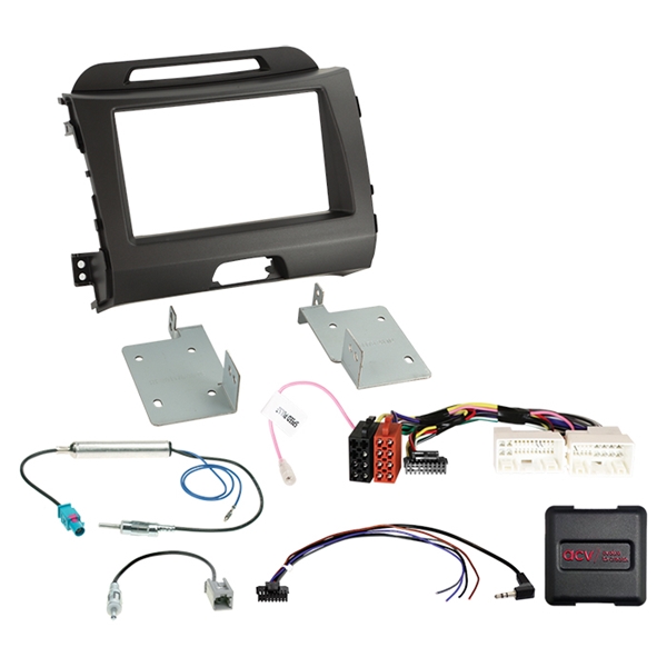Komplet monteringssæt i acv premium kvalitet til udskiftning af original radio (OEM head unit) med en eftermarkeds 2-DIN enhed i Kia Sportage. Sættet er udviklet til at matche instrumentbordets udseende og gør installationen mere plug & play ved at inkludere nødvendige adaptere og interface til udvalgte funktioner.
