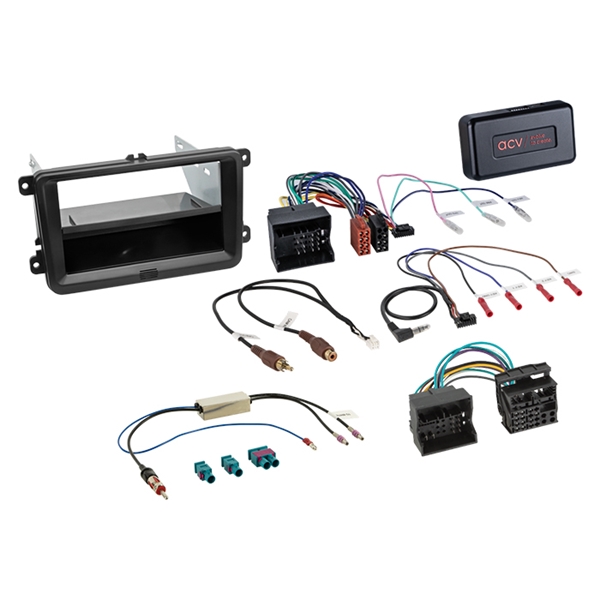 Komplet 2-DIN Kit m. rum Skoda/VW sort 40Pin/52Pin