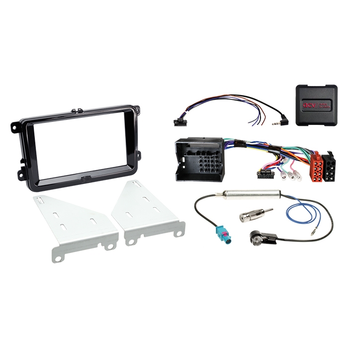 Dette komplette 2-DIN monteringssæt i acv premium kvalitet gør det muligt at udskifte bilens originale OEM-radio/navigation (HU) med en eftermarkeds 2-DIN head unit, samtidig med at nødvendige tilslutninger og analoge styresignaler til retrofit-radioen leveres via CAN-bus interface og SWC-connector kit.