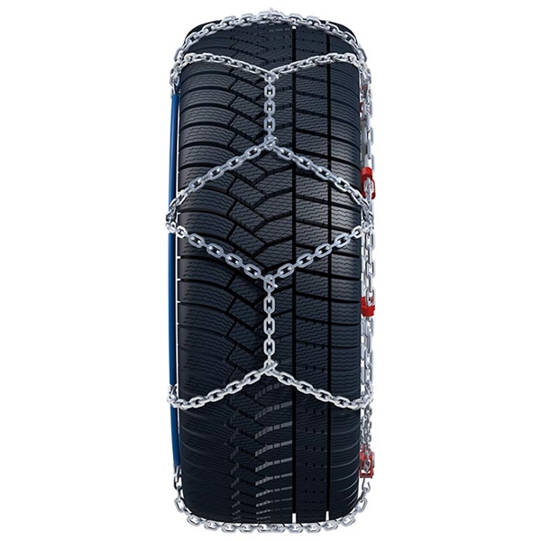 Kæden har en låseanordning med beskyttelse til hjulene og lukkede kroge, der sikrer en sikker og stabil montering. Produktet har følgende godkendelser og certificeringer: Ö-Norm 5117, Ö-Norm 5119, UNI 11313 og TÜV.