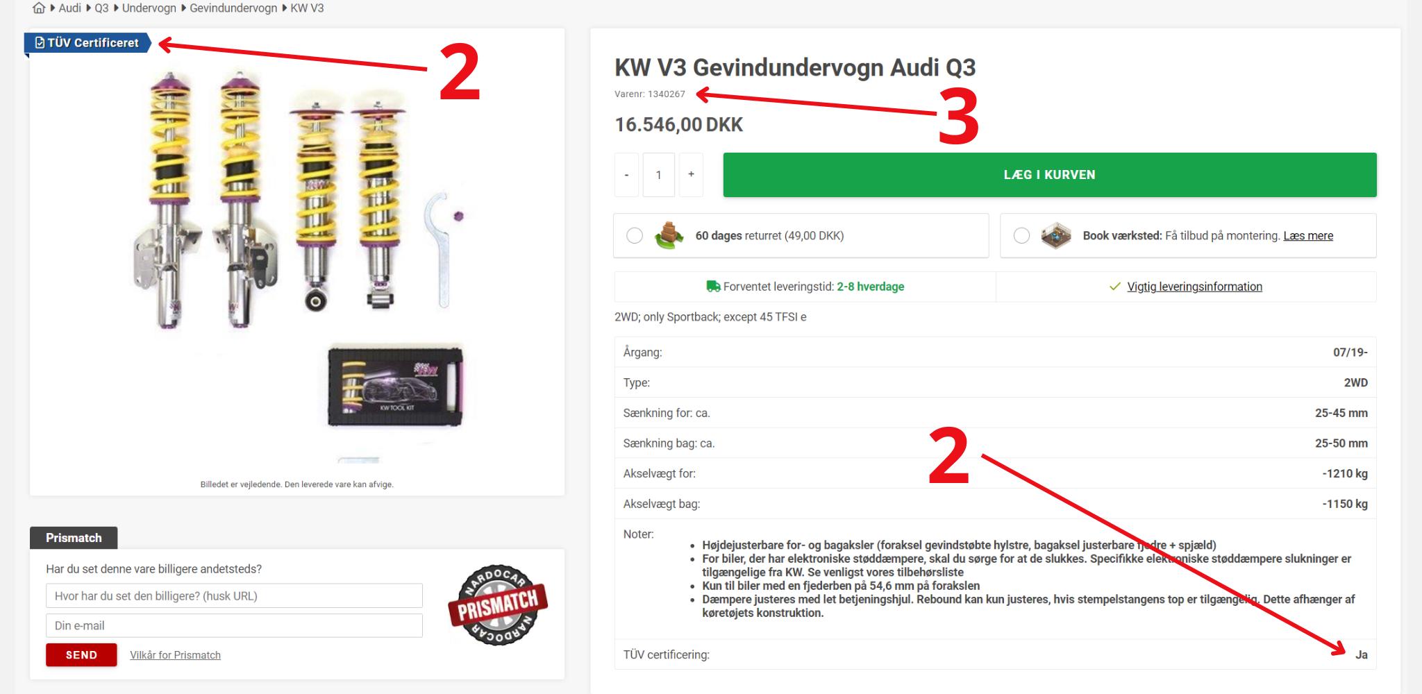 2. Tjek, at varen er markeret med TÜV - er den ikke det, vil det desværre ikke være muligt at få en TÜV-godkendelse til KW