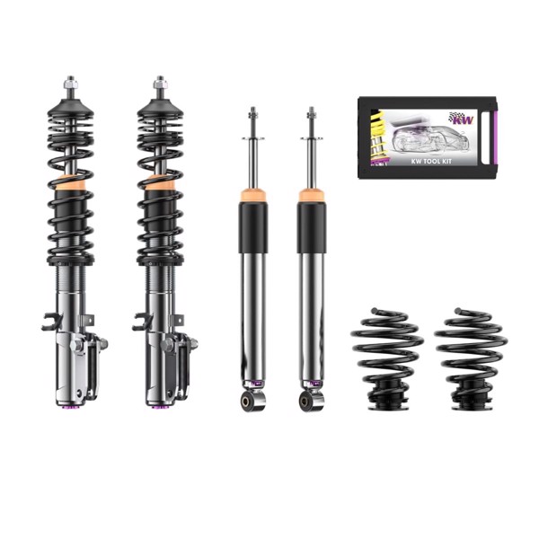 KW V3 bygger på erfaringer fra international motorsport som ADAC GT Masters og FIA GT-serierne. Den tilbyder mere end blot en sporty sænkning – med KW’s patenterede ventilteknologi kan du tilpasse undervognen individuelt til din kørestil. Ved at justere kompression og rebound separat opnår du præcis håndtering og komfort, som værdsættes af sportsbilproducenter og entusiaster verden over.
