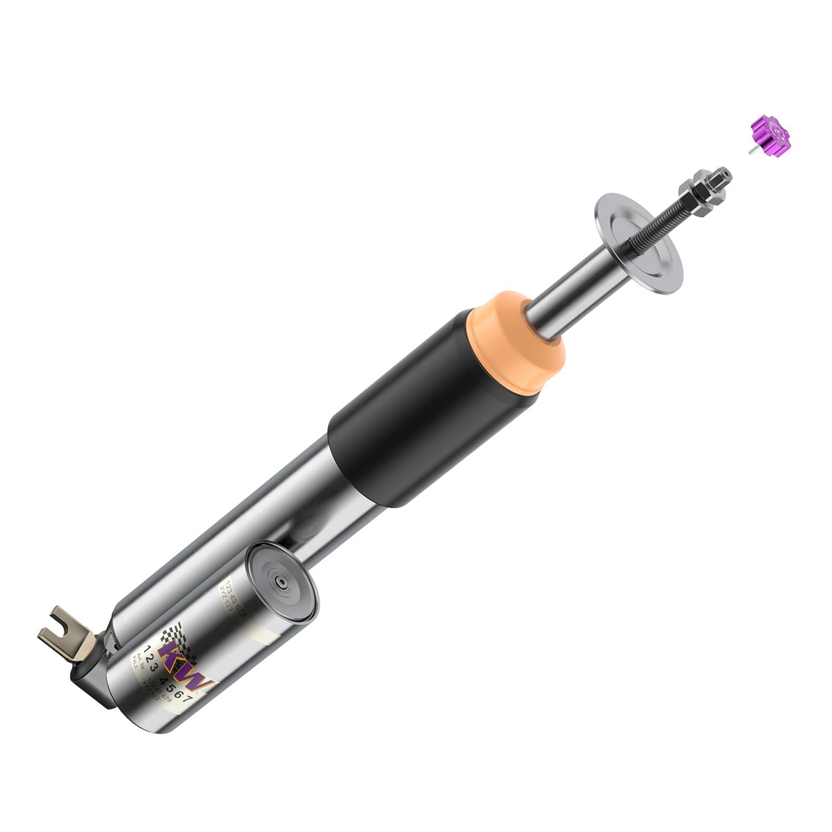 Med det integrerede justeringshjul for kompression og rebound er det nemt at finjustere dæmperopsætningen ud fra KW’s anbefalede grundindstilling. Rebound-dæmpningen kan justeres i 16 trin, hvilket gør det muligt at påvirke både styrerespons og komfort.