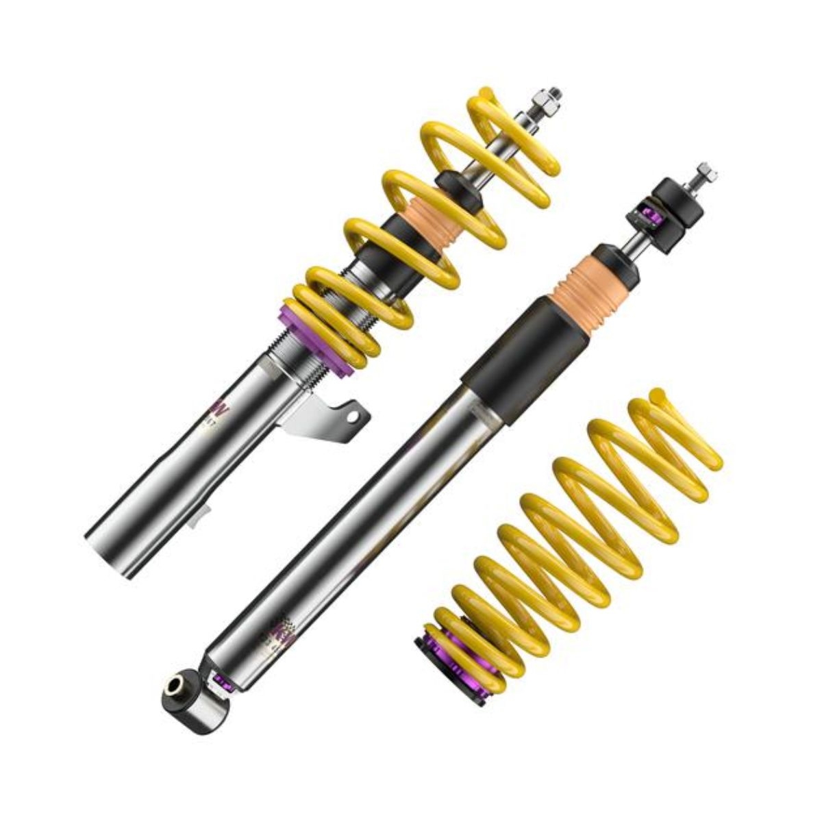 KW Variant 3 er udarbejdet i den absolut nyeste teknologi og er designet til at passe til den erfarne og øvede kører. Takket være de separate og uafhængige indstillinger for kompressions- og returdæmpning, har du alletiders mulighed for at lave en individuel opsætning af din BMW 3-Serie. Denne unikke gevindundervogn tillader justering af kompressionsdæmpningen i lave hastigheder, mens indstillingen for højere hastigheder, som er yderst afgørende for kørekomfort, er fastsat af KWs ingeniører.