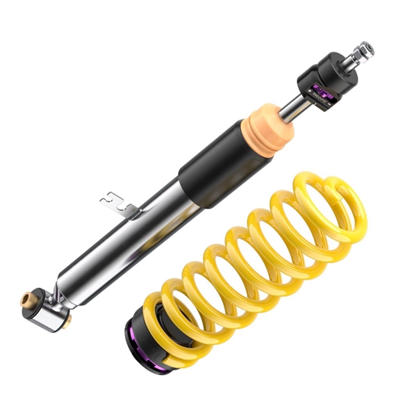 KW Variant 3 er udarbejdet i den absolut nyeste teknologi og er designet til at passe til den erfarne og øvede kører. Takket være de separate og uafhængige indstillinger for kompressions- og returdæmpning, har du alletiders mulighed for at lave en individuel opsætning af din Tesla 3. Denne unikke gevindundervogn tillader justering af kompressionsdæmpningen i lave hastigheder, mens indstillingen for højere hastigheder, som er yderst afgørende for kørekomfort, er fastsat af KWs ingeniører.