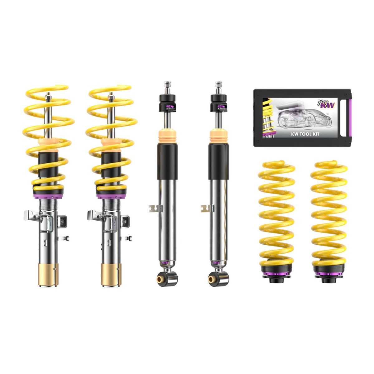 KWs professionelle produktionslinje, og anvendelse af komponenter i høj kvalitet. KW V3 gevindundervognen er produceret i rustfrit stål, som er 100 procent korrosionsbestandigt, og har en lang levetid. Med den individuelle sænkning, kan du få din bil til at se mere sportslig ud.