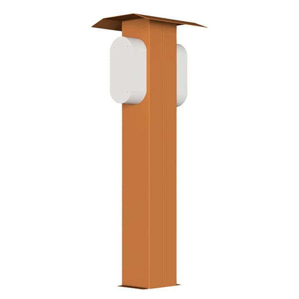 Den vedligeholdelsesfri ladestander til en enkelt ladeboks er produceret i cortenstål, som kan klare mange års udendørs brug i det kølige skandinaviske klima med lave temperaturer, vand, sne og is.