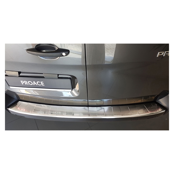 Avisa Læssekantbeskytter til Toyota Proace II, 2016- Stål Undgå ridser og slidmærker på bagkofangeren med en læssekantbeskytter fra Avisa, når lasten skal læsses. Denne læssekantbeskytter er formstøbt og specielt designet til at passe perfekt til din bils læssekant, hvilket sikrer optimal beskyttelse og giver et elegant udseende. Den monteres nemt uden brug af værktøj, på få minutter. Du undgår dermed besværet ved komplekst installationsarbejde. Avisa læssekantbeskytteren er den perfekte løsning til din bil, fordi den både har beskyttende funktioner og ser flot ud som et dekorativt element. Den er fastgjort ved hjælp af dobbeltklæbende tape, som er placeret på alle fire kanter af læssekantbeskytteren. Monteres nemt uden brug af værktøj Materiale: Poleret rustfrit stål 100 % tilpasset til den enkelte bil Fastgøres ved hjælp af kraftig dobbeltklæbende tape Modstandsdygtig: -40°C til +50°C Velegnet til vaskehallen Passer til: Toyota Proace II, 2016-