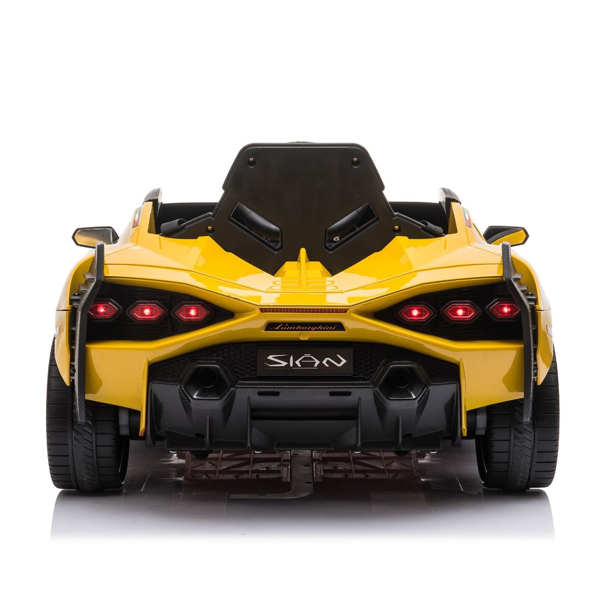 Lamborghini Sian elbilen er spækket med detaljer, der giver en autentisk superbiloplevelse. De ikoniske scissor doors åbner elegant op, præcis som på den rigtige Lamborghini, mens LED-for- og baglygter lyser vejen op og tilføjer ekstra realisme til kørslen. Det komfortable lædersæde med sporty finish sikrer, at barnet sidder godt fast, samtidig med at det føles luksuriøst og eksklusivt.