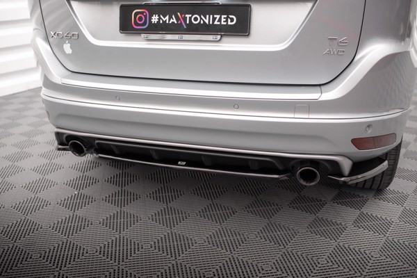 Maxton Central Rear Splitter For Volvo Xc60 R-Design Mk1 Facelift - Gloss Black