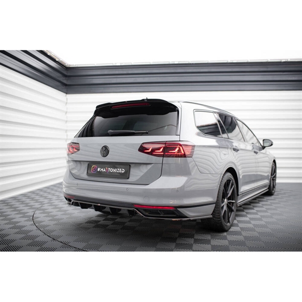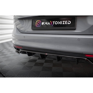 Maxton Central Rear Splitter (With Vertical Bars) Volkswagen Passat R-line B8 Facelift - Gloss Black