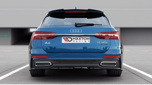 Maxton Central Rear Splitter (With Vertical Bars) Audi A6 S-Line Avant C8 - Gloss Black
