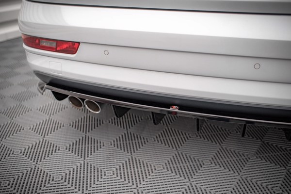 Maxton Central Rear Splitter (With Vertical Bars) Audi Q3 8U Facelift - Gloss Black