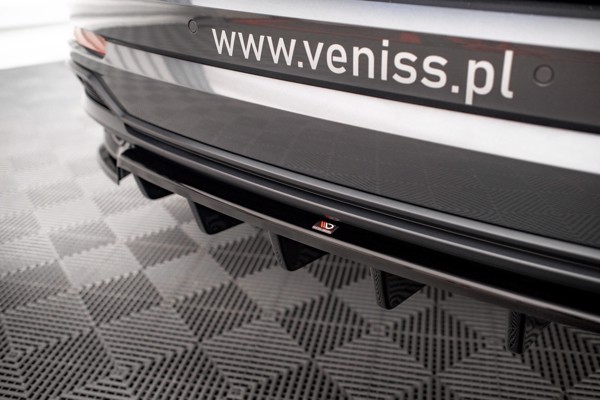 Maxton Central Rear Splitter (With Vertical Bars) Audi Q3 S-Line F3 - Gloss Black