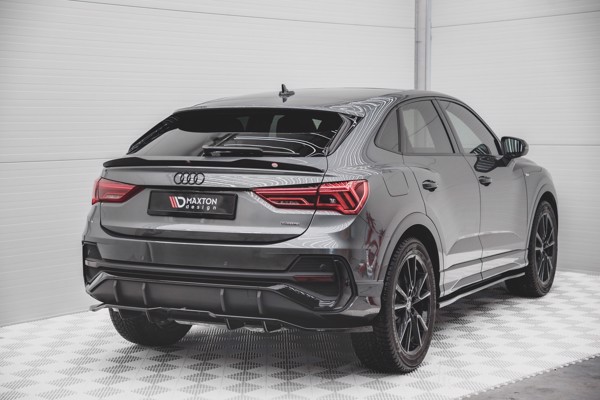 Maxton Central Rear Splitter (With Vertical Bars) Audi Q3 Sportback S-Line - Gloss Black