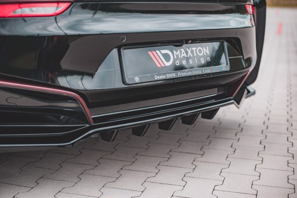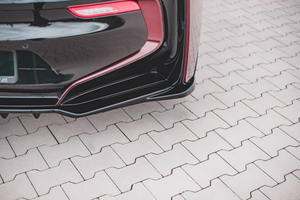 Maxton Central Rear Splitter (With Vertical Bars) BMW I8 - Gloss Black