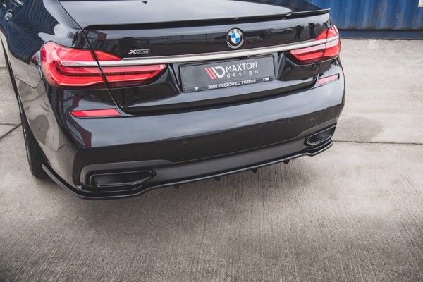 Maxton Central Rear Splitter (With Vertical Bars) For BMW 7 M-Pack G11 - Gloss Black