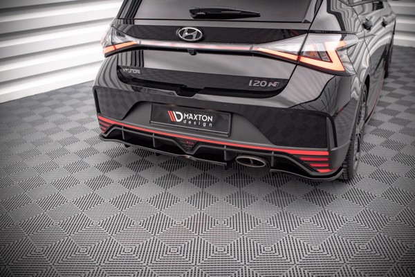 Maxton Central Rear Splitter (With Vertical Bars) Hyundai I20 N Mk3 - Gloss Black