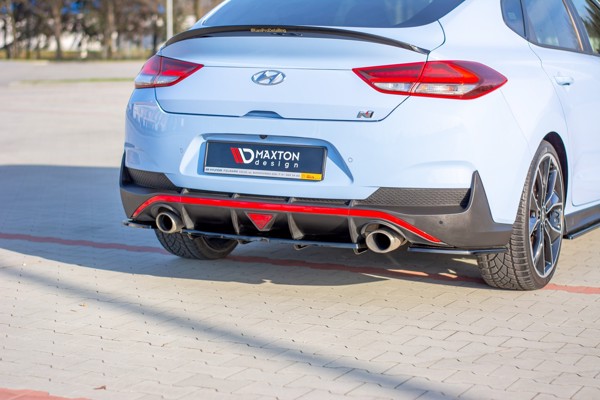 Maxton Central Rear Splitter (With Vertical Bars) Hyundai I30 N Mk3 Fastback  - Gloss Black