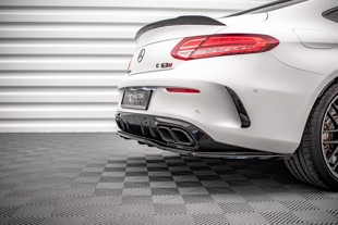 How does this Mercedes-AMG C 63AMG Coupe C205 Facelift central rear splitters stand out? - it’s available in a number of surface looks - it’s moisture-resistant - it has a UV-repelling layer - requires no painting - it’s TUV MATERIALGUTACHTEN certified