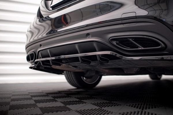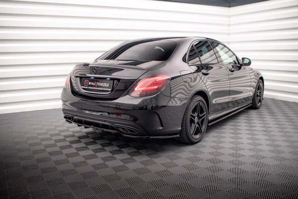 Maxton Central Rear Splitter (With Vertical Bars) Mercedes-Benz C Amg-Line W205 Facelift - Gloss Black