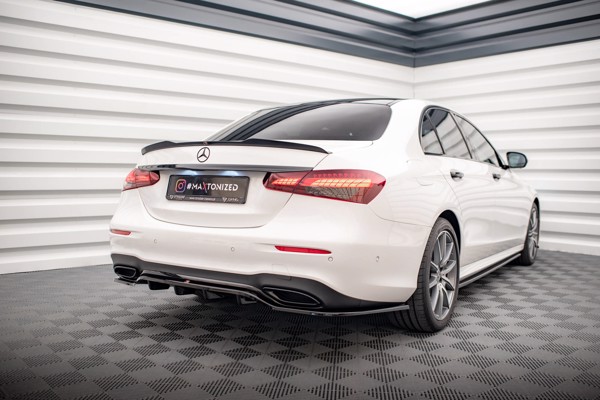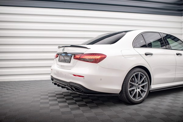How does this Mercedes-Benz E AMG-Line W213 Facelift central rear splitters stand out? - it’s available in a number of surface looks - it’s moisture-resistant - it has a UV-repelling layer - requires no painting - it’s TUV MATERIALGUTACHTEN certified