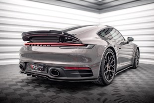 The Porsche 911 Carrera 4S 992 central rear splitter shows an aesthetic form and will constitute a striking addition to your machine. The installation of this product will cause visual lowering of the bodywork which contributes to that slick modern racing look. This element is the most presentable alongside side skirts and a front splitter. It comes in carbon, gloss, or textures surface structure varieties. You an also purchase a red or white decorative stripe to further personalize your tuning.